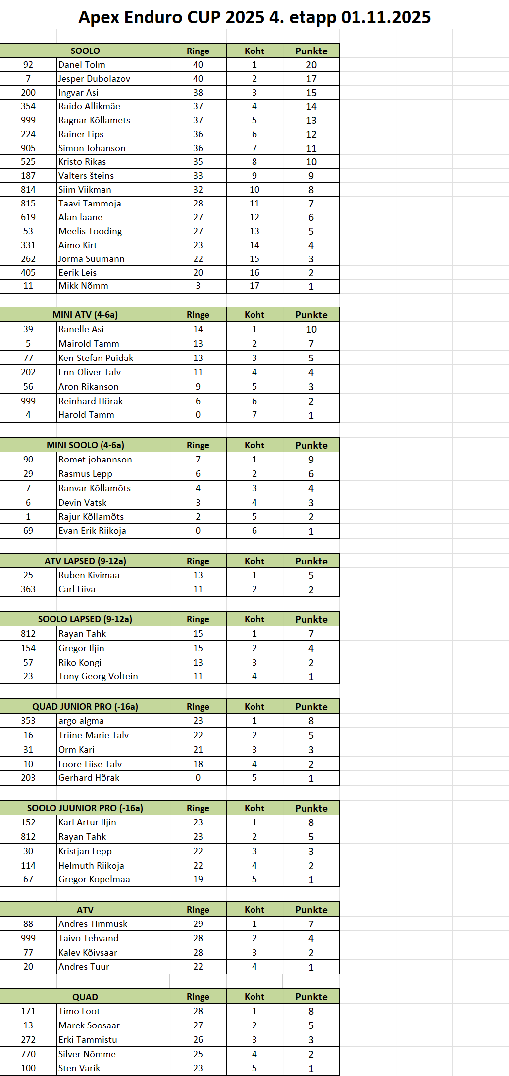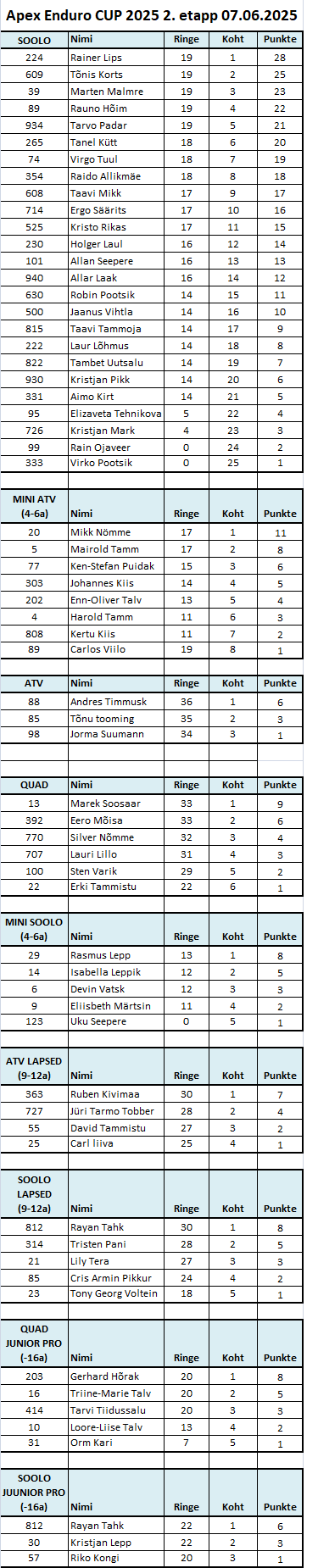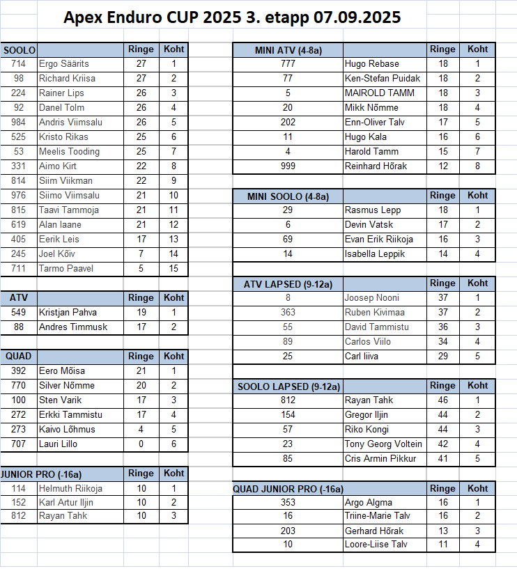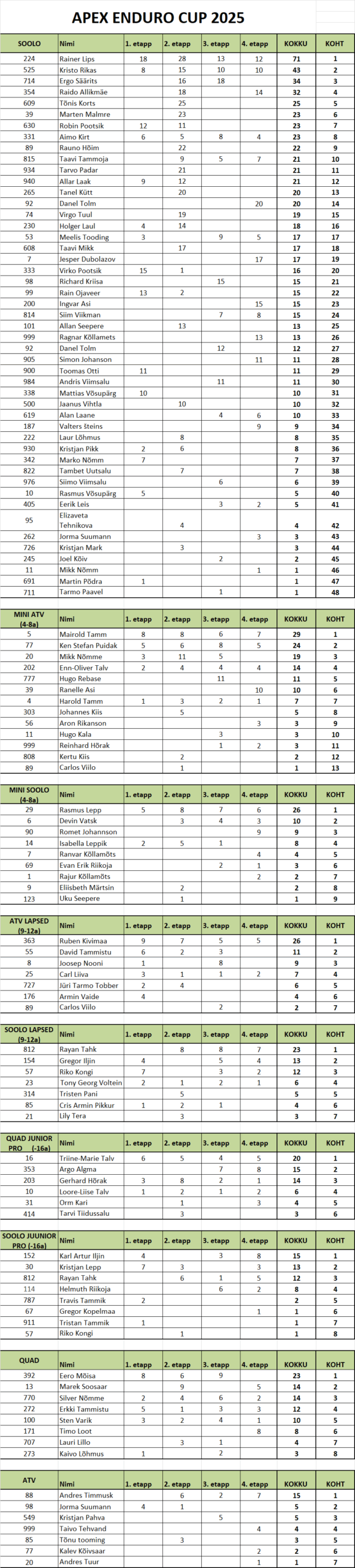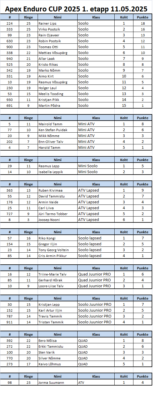 Apex Enduro CUP 2025 HOOAJA PUNKTITABEL